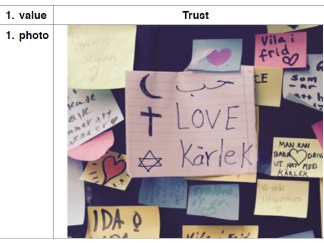 Der „Social Art Workshop“, der am Freitag, den 19. Mai 2017 in Moskau stattfand, setzte sich mit dieser kulturellen Wertefindung künstlerisch auseinander. Im Vorfeld sollten die Jugendlichen zwei Fotos mitbringen, die Werte, an die sie glauben, widerspiegeln und sich dann darüber mit anderen Jugendlichen austauschen und darüber diskutieren. Ein klarer Favorit unter den Werten der Jugendlichen aus 16 verschiedenen Nationen waren „Freiheit“ und „Frieden“, „Toleranz“ und „Vielfalt / Verschiedenheit“. Auch Nachhaltigkeit treibt die Jugendlichen zwischen 15 und 25 Jahren um, sowie Respekt, Liebe und Bildung.